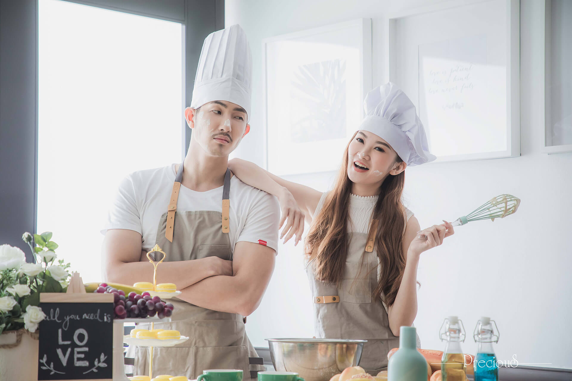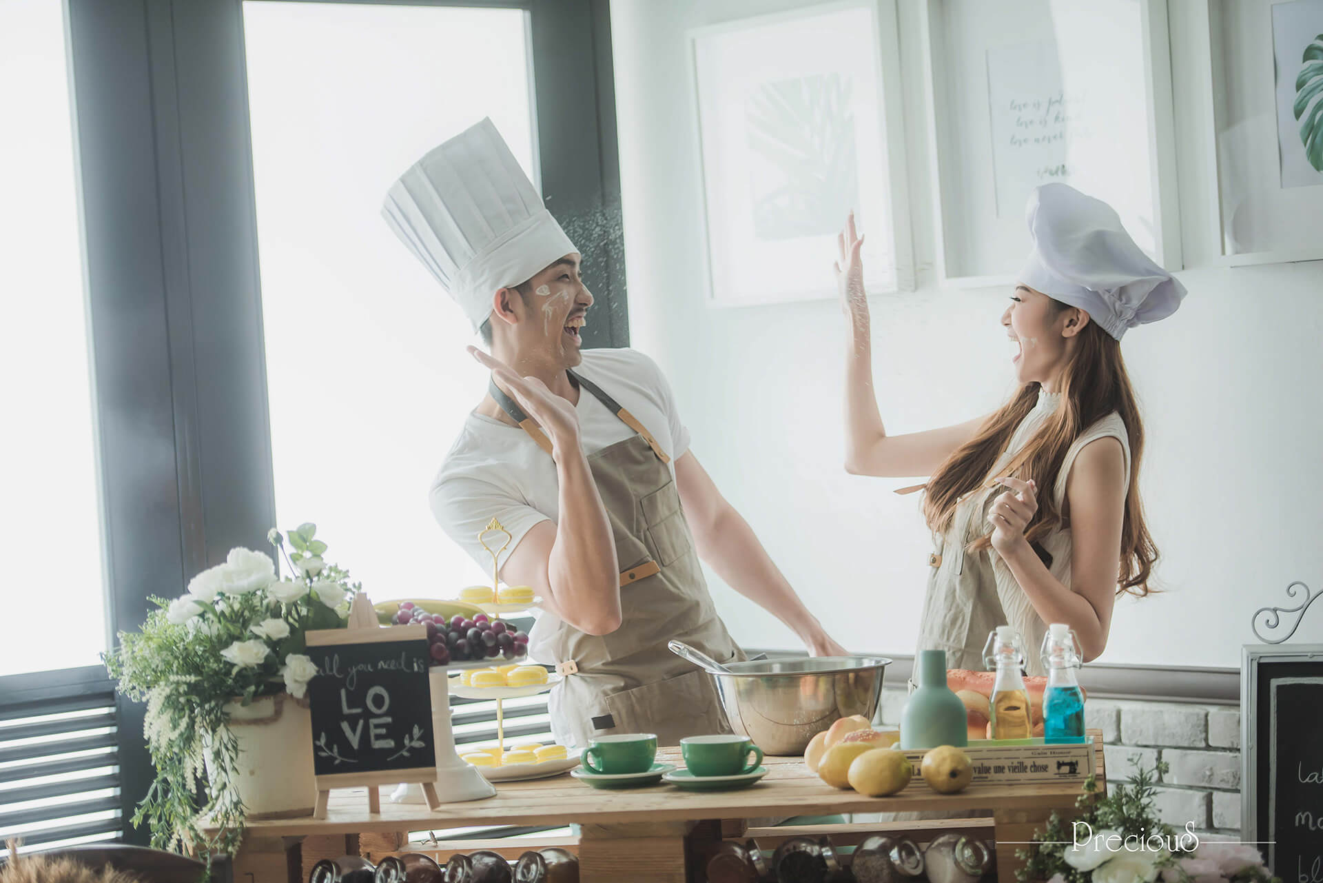 The idea behind our Bakery Theme came from one of our staff that loves to bake. (...and of course, the baking scene is interesting because you get to toss flour on your partner. *cheeky laugh*).